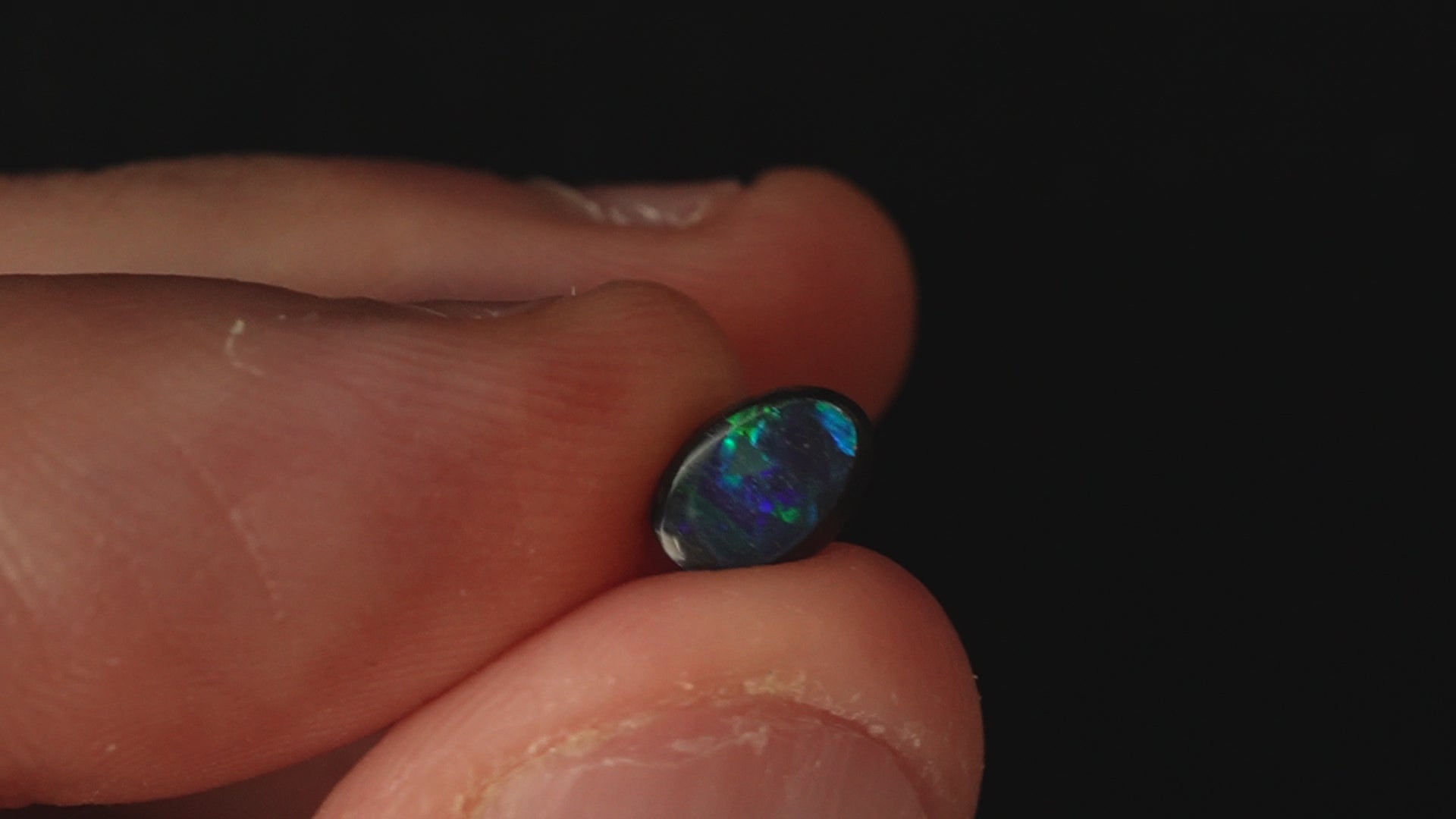 · Opal Origin and Type: Lightening Ridge Crystal Doublet, glued with Epoxy 330 and black oxide powder on black potch backing.